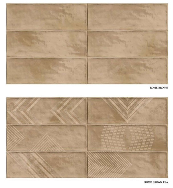 Ce carrelage mural au format 10×30 cm se distingue par son élégante teinte Rome Brown, un brun chaud aux nuances légèrement nuagées qui apporte caractère et profondeur aux espaces intérieurs. Il se décline en une version unie et en un ensemble de carreaux décorés de motifs graphiques fins, permettant de créer des compositions murales modernes et personnalisées.