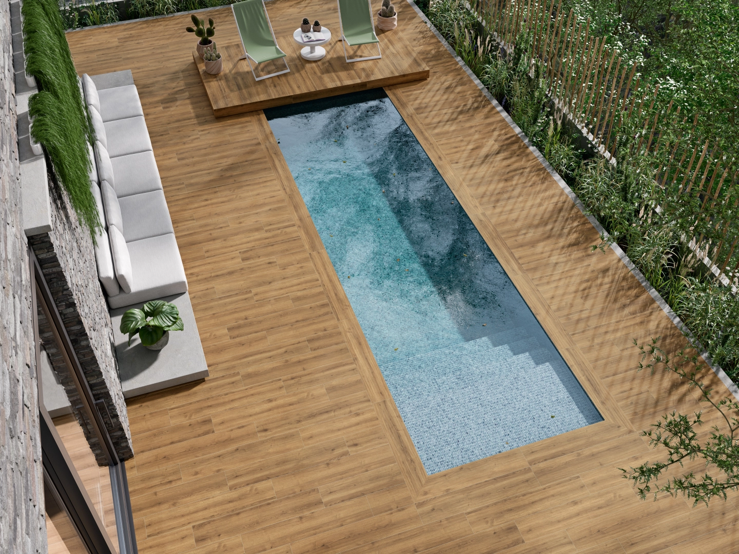 Le carrelage Concorde Natural associe l’authenticité du bois au confort du grès cérame. Son format 23 × 120 cm imite parfaitement les lames de parquet grâce à ses veines fines et ses nuances naturelles. Équipé de la technologie SlipStop, il offre une surface sécurisée, antidérapante et agréable au toucher, idéale pour les pièces humides tout en conservant une finition douce.