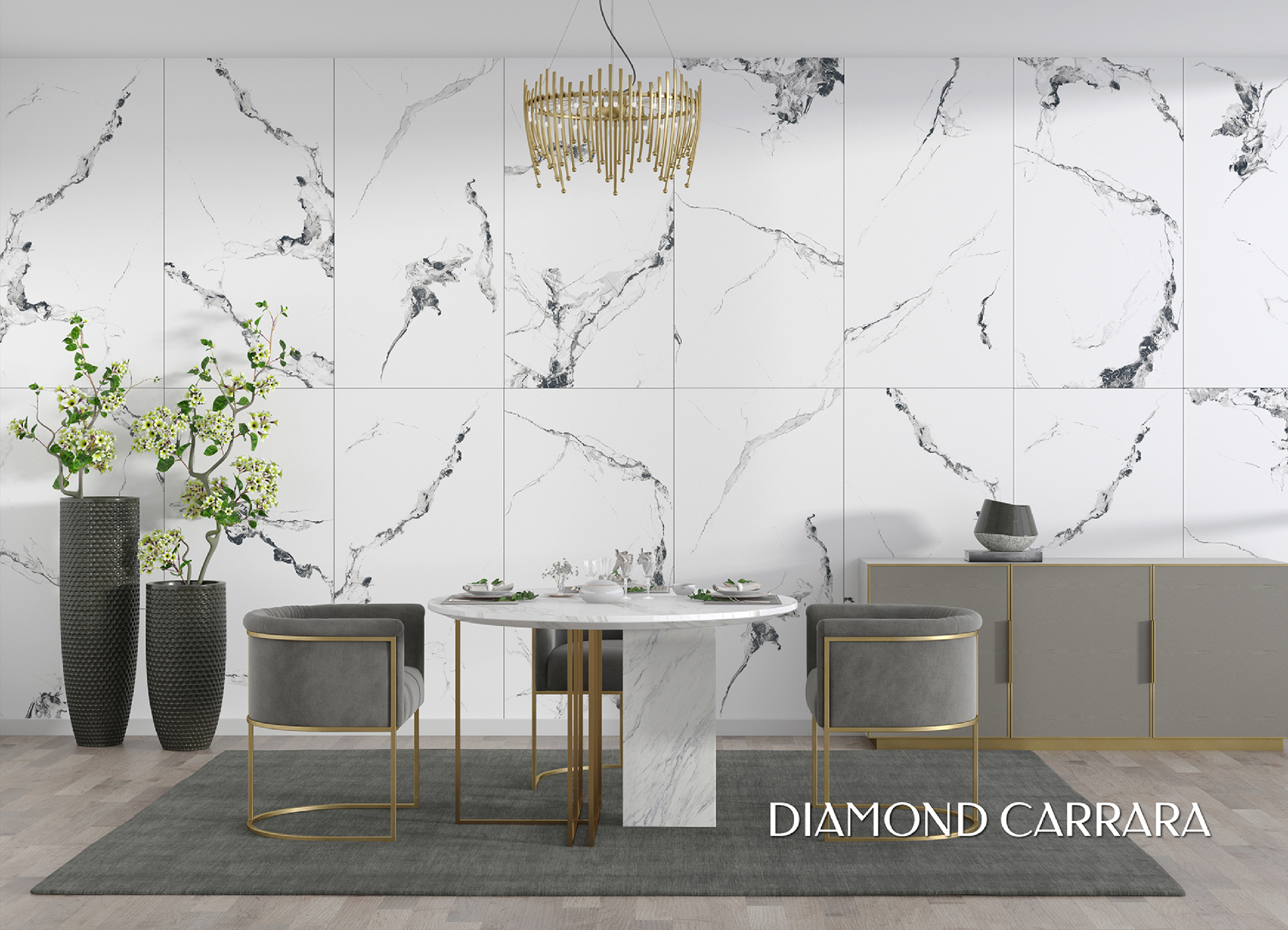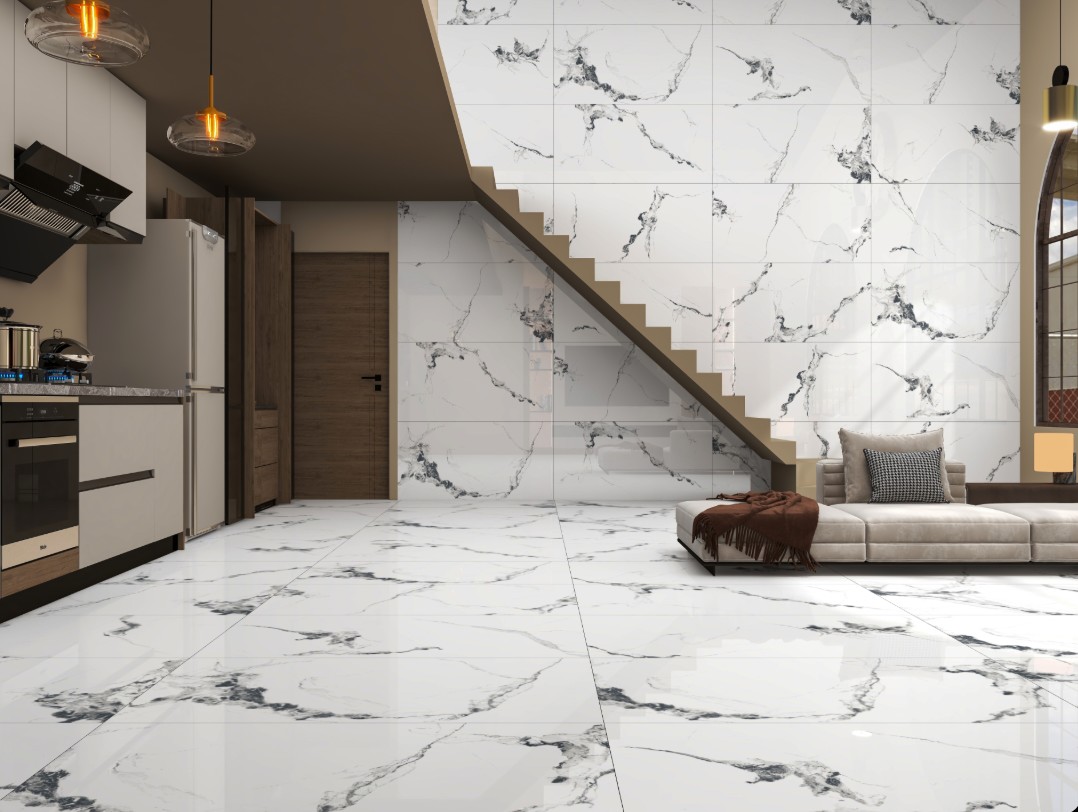 Apportez une touche d’élégance intemporelle à votre intérieur avec le carrelage Diamond Carrara. Ce carrelage brillant au fond blanc pur, parsemé de veines noires délicates, imite à la perfection l’aspect du marbre, offrant un rendu luxueux et moderne. Son design raffiné est idéal pour apporter de la lumière et de la sophistication à vos espaces, qu’il s’agisse de sols ou de revêtements muraux.