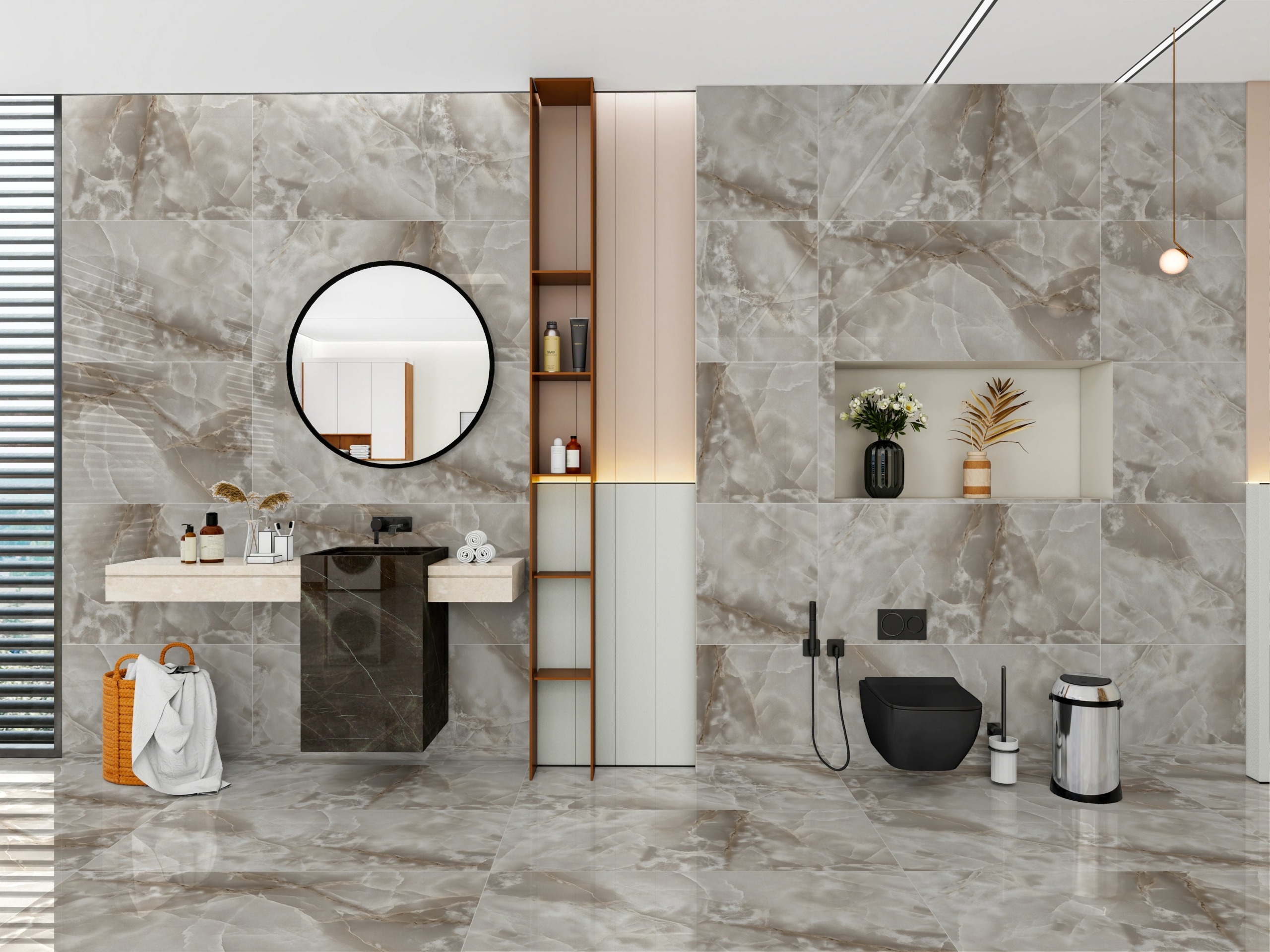 Le carrelage Onyx Latte brillant en format 60×120 cm incarne le raffinement et la douceur des pierres naturelles. Inspiré de l’onyx, il se distingue par ses nuances beiges et crème délicatement nuagées, traversées de veinages subtils et élégants qui apportent profondeur et caractère à chaque pièce.
