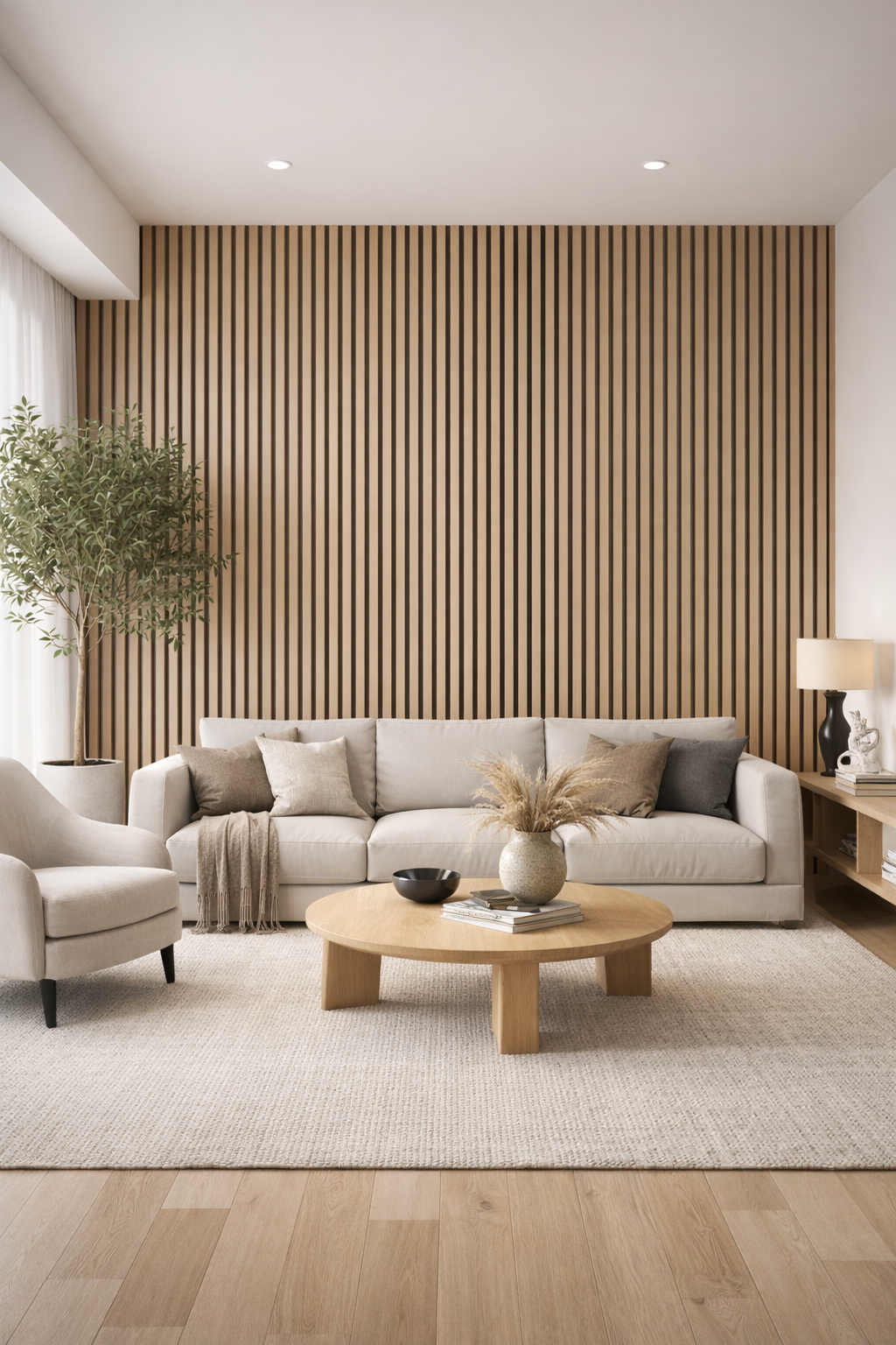 Composé de tasseaux en finition bois clair fixés sur un support feutré noir, ce panneau crée un contraste moderne et raffiné. Il est idéal pour les intérieurs résidentiels comme professionnels : salons, bureaux, hôtels, spas, halls d’accueil ou espaces commerciaux.