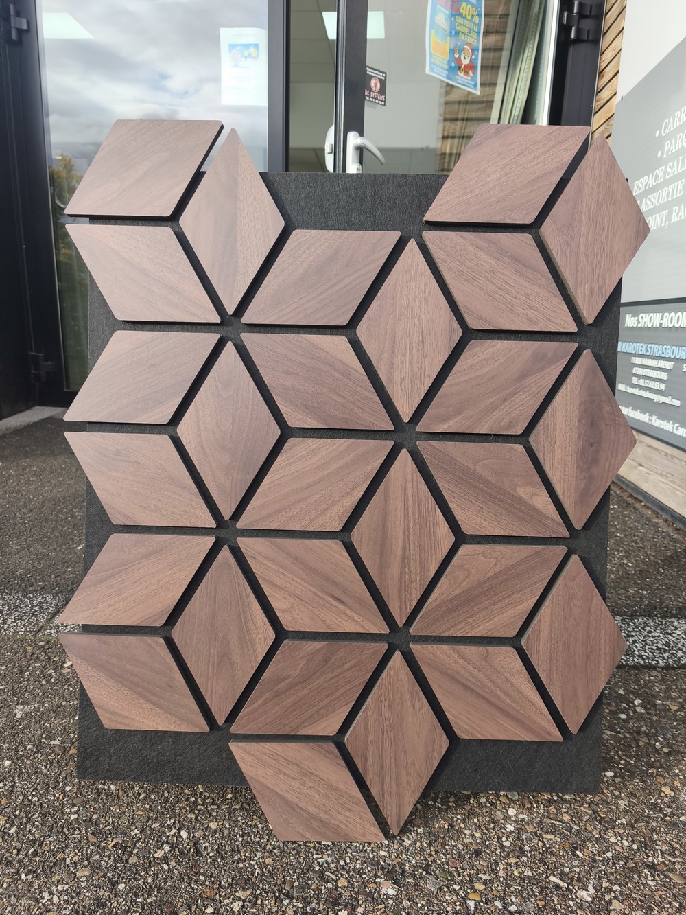 Grâce à son design modulaire et graphique, ce panneau s’intègre parfaitement dans des environnements variés : bureaux, salles de réunion, espaces commerciaux, hôtels, restaurants ou intérieurs résidentiels. Le contraste entre le bois et le feutre souligne la géométrie du motif et renforce son caractère architectural.