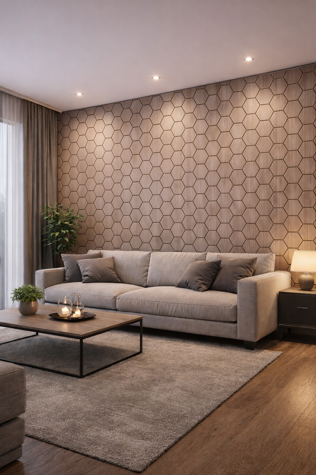 Ce panneau décoratif hexagonal effet bois fumé apporte une touche moderne et élégante à votre intérieur. Composé de onze hexagones au rendu chêne grisé, il crée un motif en nid d’abeille raffiné, idéal pour habiller un mur, créer une tête de lit ou personnaliser un espace professionnel. Sa teinte douce et légèrement fumée offre une ambiance contemporaine tout en restant chaleureuse. Léger et facile à installer, ce panneau peut être fixé ou collé selon vos besoins, permettant une mise en place rapide sans travaux complexes. Son design modulable s’intègre aussi bien dans un salon que dans une chambre ou un bureau, et permet de transformer un espace avec un habillage décoratif unique et tendance.