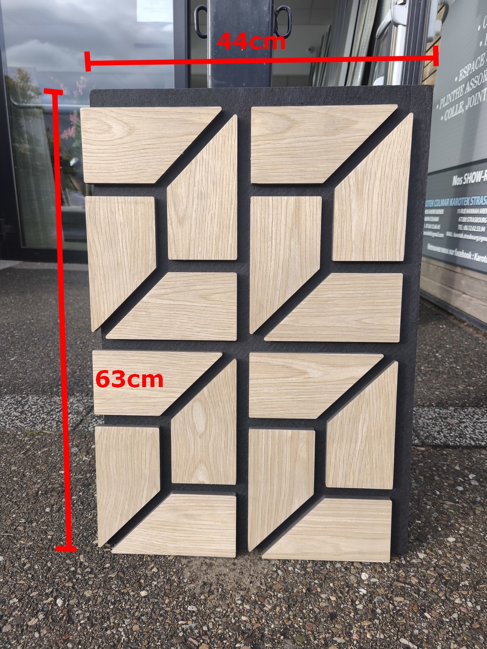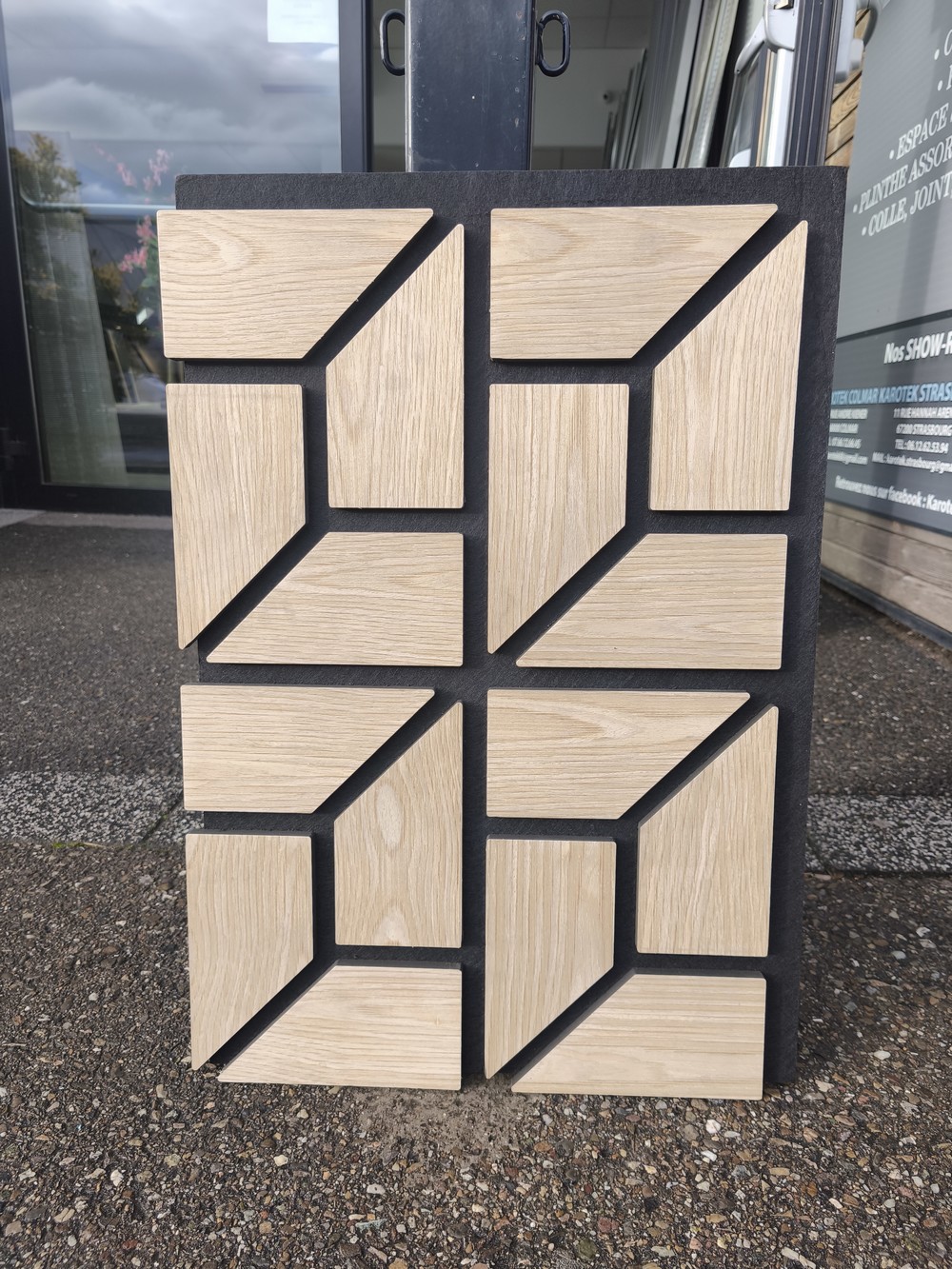 Ce panneau présente neuf carreaux aspect bois clair fixés sur un support en feutre acoustique noir, permettant à la fois de mettre en valeur les teintes naturelles du bois et d’offrir une base aux propriétés d’absorption sonore. Grâce à ce matériau, le panneau assure une présentation élégante tout en réduisant les résonances, ce qui facilite l’observation des carreaux dans un environnement calme et agréable. Idéal pour comparer les nuances selon la lumière de votre pièce, il constitue un outil pratique pour particuliers et professionnels souhaitant visualiser le rendu final d’un carrelage ou d’un revêtement céramique imitant le bois.