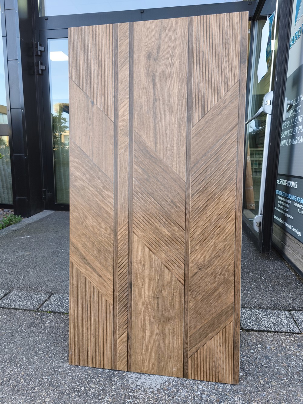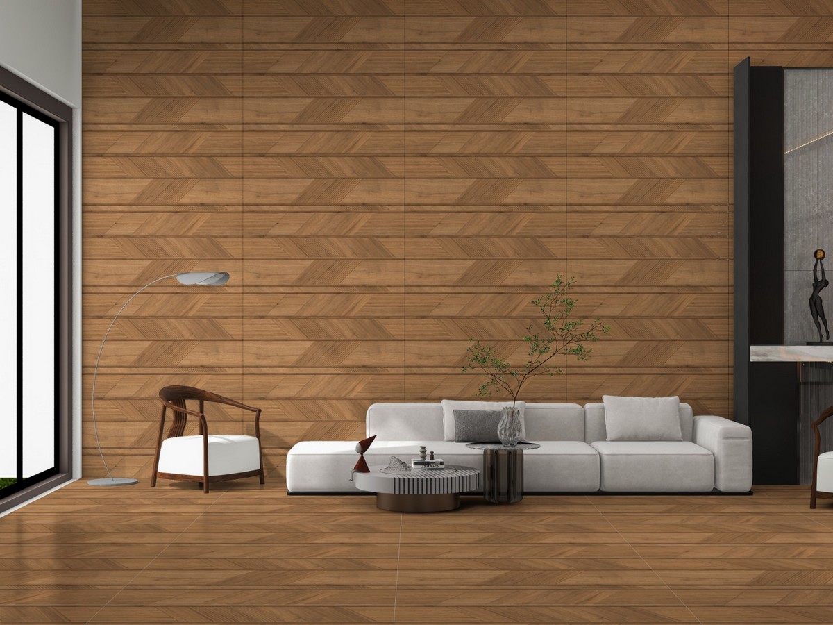 Ce carrelage grand format 60 × 120 cm offre un superbe effet bois travaillé, mêlant différentes orientations de veinages et de fines stries pour créer un motif géométrique élégant et contemporain. Sa teinte chaleureuse évoque le bois naturel tout en bénéficiant de la résistance et de la facilité d’entretien de la céramique. Idéal pour sublimer un salon, une chambre, un hall d’entrée ou un espace commercial, ce carrelage apporte une touche raffinée et moderne à n’importe quel intérieur. Grâce à son format XL, il permet de limiter les joints et d’obtenir un rendu visuel harmonieux et haut de gamme.